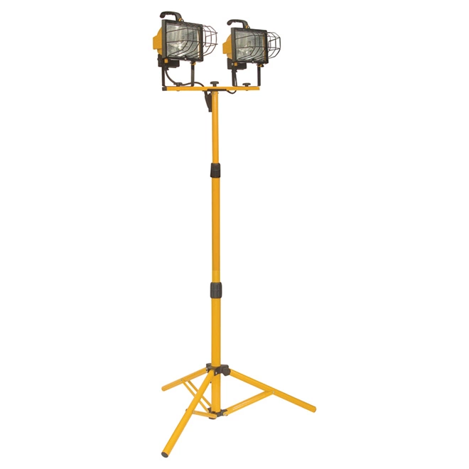Ideal for your garage, jobsite or outdoor work area, this Uberhaus halogen work lamp features two 500-watt heads that brighten up your space. The work light has a detachable light base and a tripod design for added stability. Heavy-duty wire guards protect the tempered glass covers from breaking for a durable design and rugged performance.