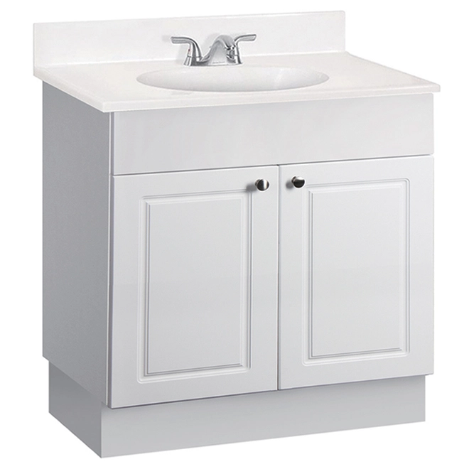 This simple Project source vanity-sink combo is a great choice for any bathroom. It’s white finish and traditional design pairs well with all types of interior décor, while its bottom compartment offers extra storage space for bathroom necessities. Comes with a 1-year limited warranty.