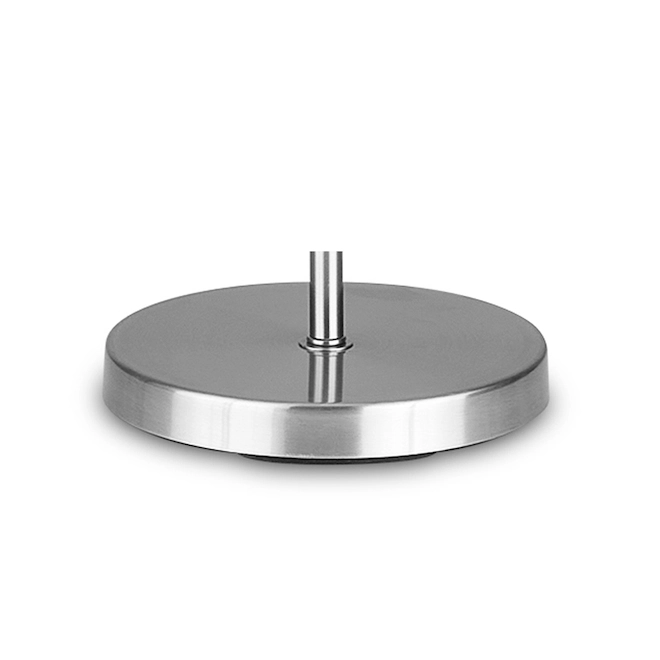 - Brushed nickel finish metal floor lamp offers an easy contemporary look