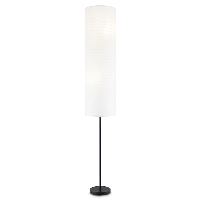 Model Description :69.75″H Painted Matte Black Plastic Base Floor Lamp with White Rice Paper Shade