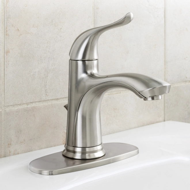 This Project Source Qino faucet features a beautiful brushed nickel finish and an easy-to-use single metal lever handle. The quick drain faucet includes a deck plate and a pop-up drain. Plus, it is ADA-compliant and meets the WaterSense criteria. Lead-free brass. Limited lifetime warranty.