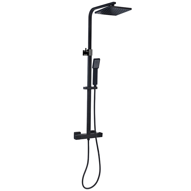 Modernize your shower and create an incomparable experience with this Project Source shower column with adjustable height. The square-shaped rain showerhead and 1 function handheld spray showerhead have easy-to-clean nozzles. The unit is equipped with a thermostatic cartridge, a sliding rail and a 59″ long flexible hose ensuring the hand shower is easy to reach and simple to use. The set is offered a sleek and trendy black finish.